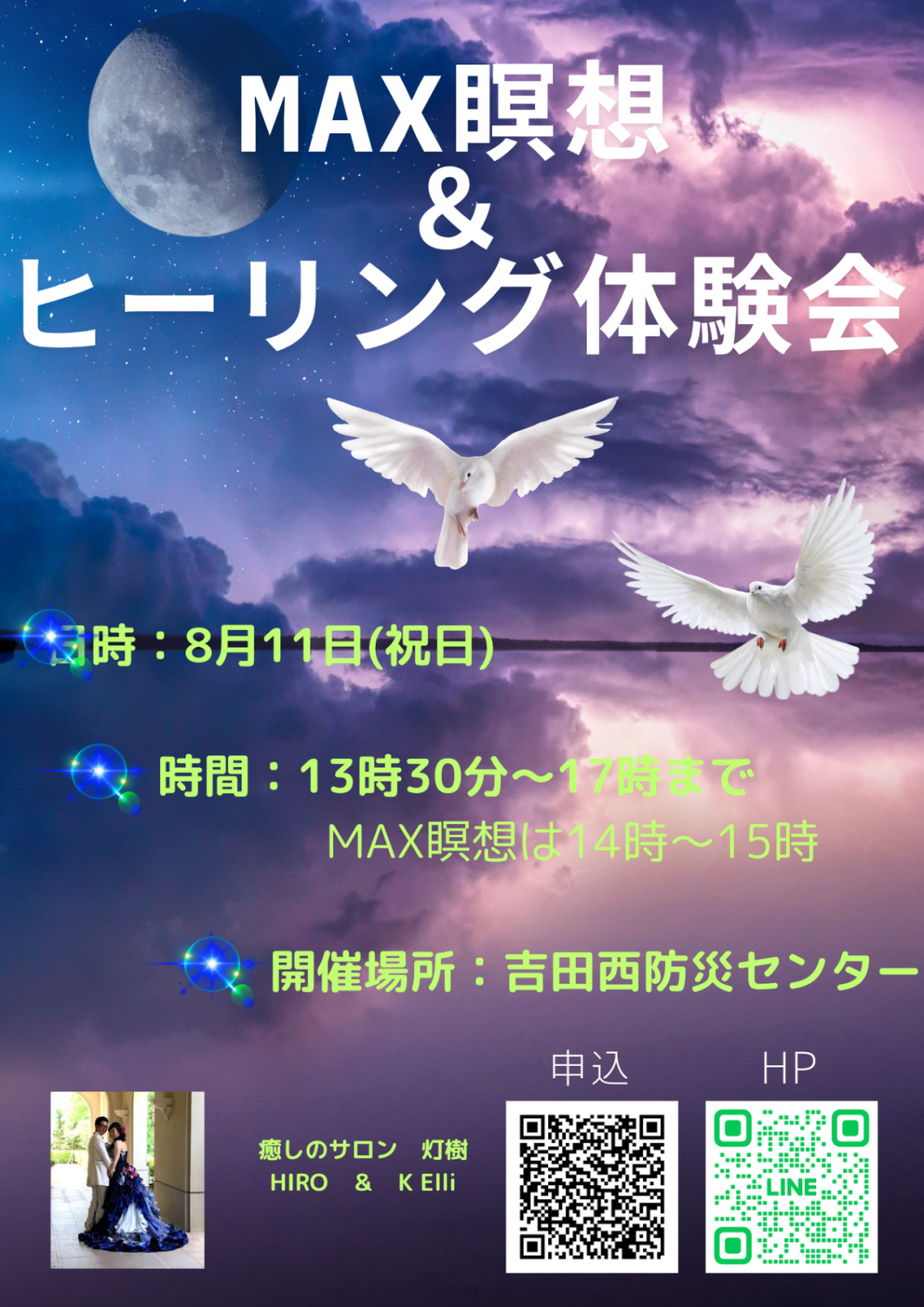 ⭐MAX瞑想会&ヒーリング体験会 Vol.2⭐🌸8/11(祝日)13:30~17:00🌸吉田西防災センター 人の頭は意識しなくても1分間に10万以上の情報処理をしています。そのため頭の中パンパン状態です。そのために考えなくてはいけないときにいいアイディアが浮かんでこない。これをしないといけないのに目の前のことが気になって優先順位が入れ替わり気付いたら結局しなくてはいけないことがあとまわし。家から一歩もでずに外界から距離を置きたい。などありませんか?そんな頭の中のパンク状態をスッキリさせてくれるのがMAXめい想です。瞑想苦手、60分したことがない不安な方も誘導瞑想になりますので安心して参加してください。 お時間のある方は、瞑想会の後にヒーリングや占い体験もオススメです。DNAに光を注入 使命発見・才能開花 🌼DNAアクティベーション 20分/3,500円 30分/5,000円問題解決・使命タ...